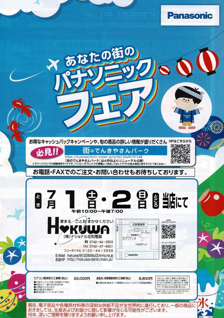 7月1日(土)・7月2日(日)の2日間で「あなたの街のパナソニックフェア」を当店にて開催いたします。