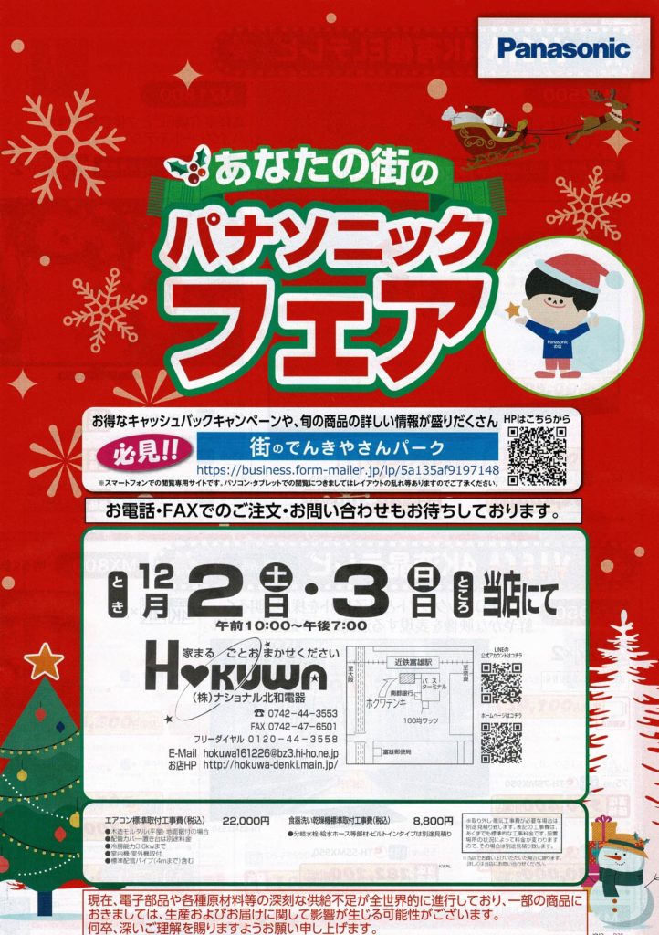 12月2日(土)・12月3日(日)の2日間で「あなたの街のパナソニックフェア」を当店にて開催いたします。