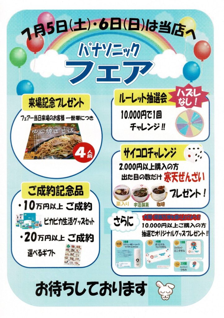 お待たせしました!7月5日(土)7月6日(日)の2日間でパナソニックフェアを当店で開催いたします。
