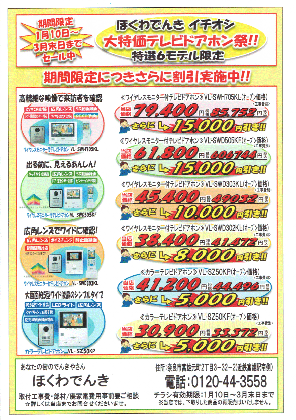 奈良の街の電気屋さん!ナショナルホクワ電器! リフォーム・デジタル家電・オール電化ならお任せ下さい!