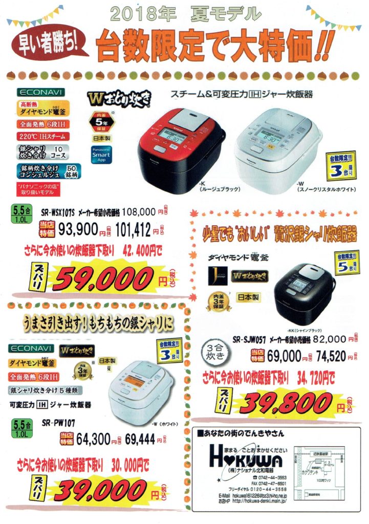 奈良の街の電気屋さん!ナショナルホクワ電器! リフォーム・デジタル家電・オール電化ならお任せ下さい!