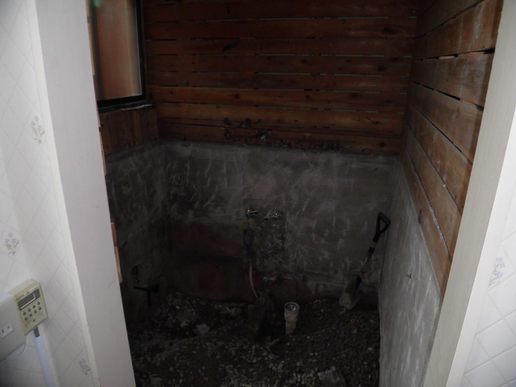 既存のお風呂を全部取り除いたところです。