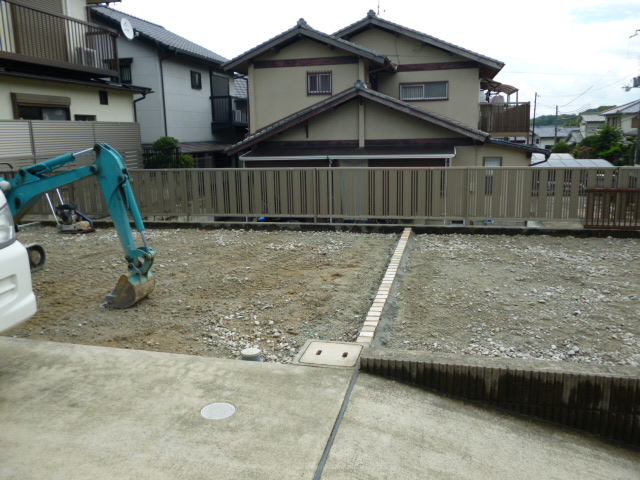ガレージ部分については土の部分を鋤取り工事を行い、下地メッシュ筋敷を行いコンクリート打敷工事を行いました。また、庭の部分については伐採伐根を行い残土処分を行い、下地コンクリートそして犬走洗い出しを実施させて頂きました。