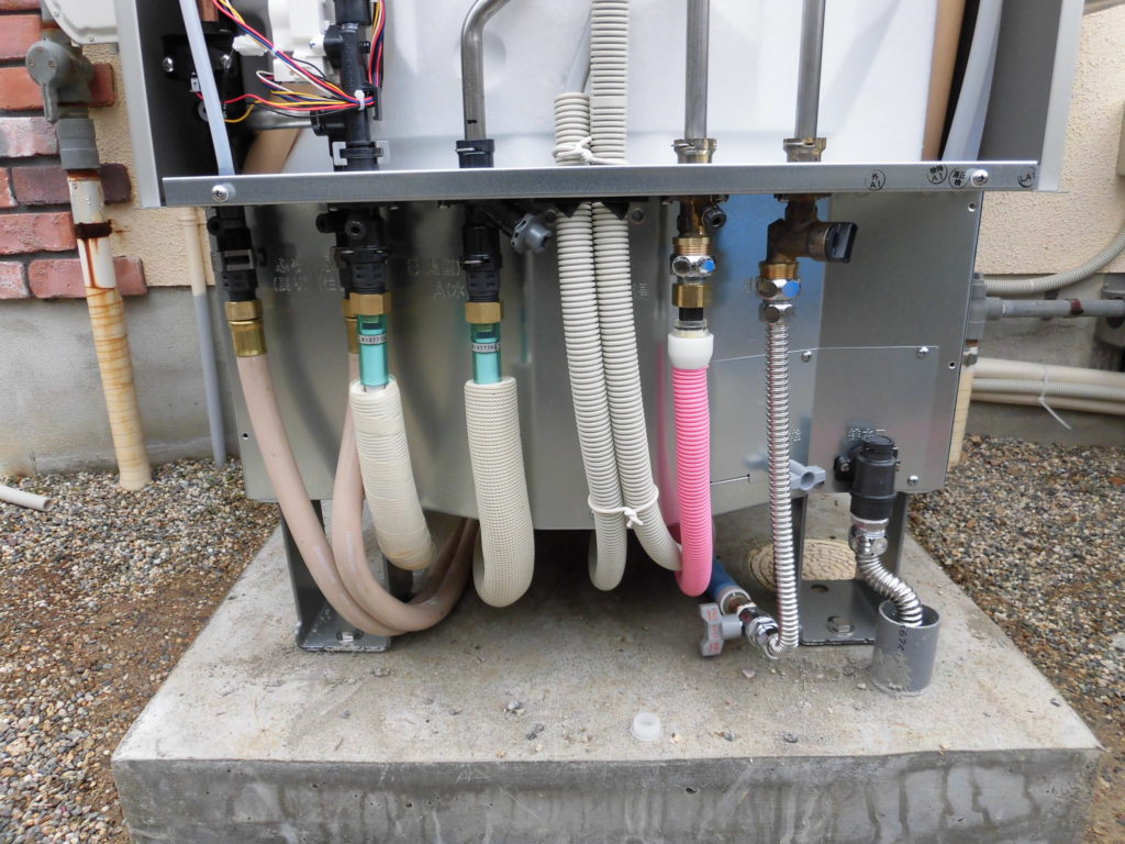 本体の接続が完了しました。ガス給湯器もエコキュートも接続は同じつなぎになります。