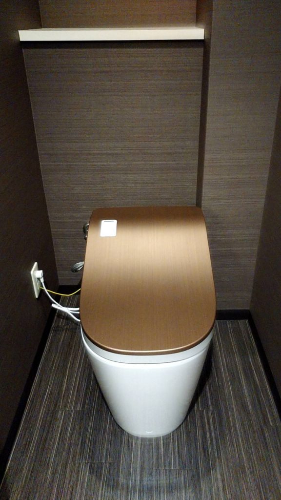 同じならクロス・床のCF・天井のクロスも変えてイメージを一新したいという事で張り替えをしました。アラウーノのフタも変更してフタに合わせてクロス・床を選んで頂きました。高級ホテルのようですね(笑)