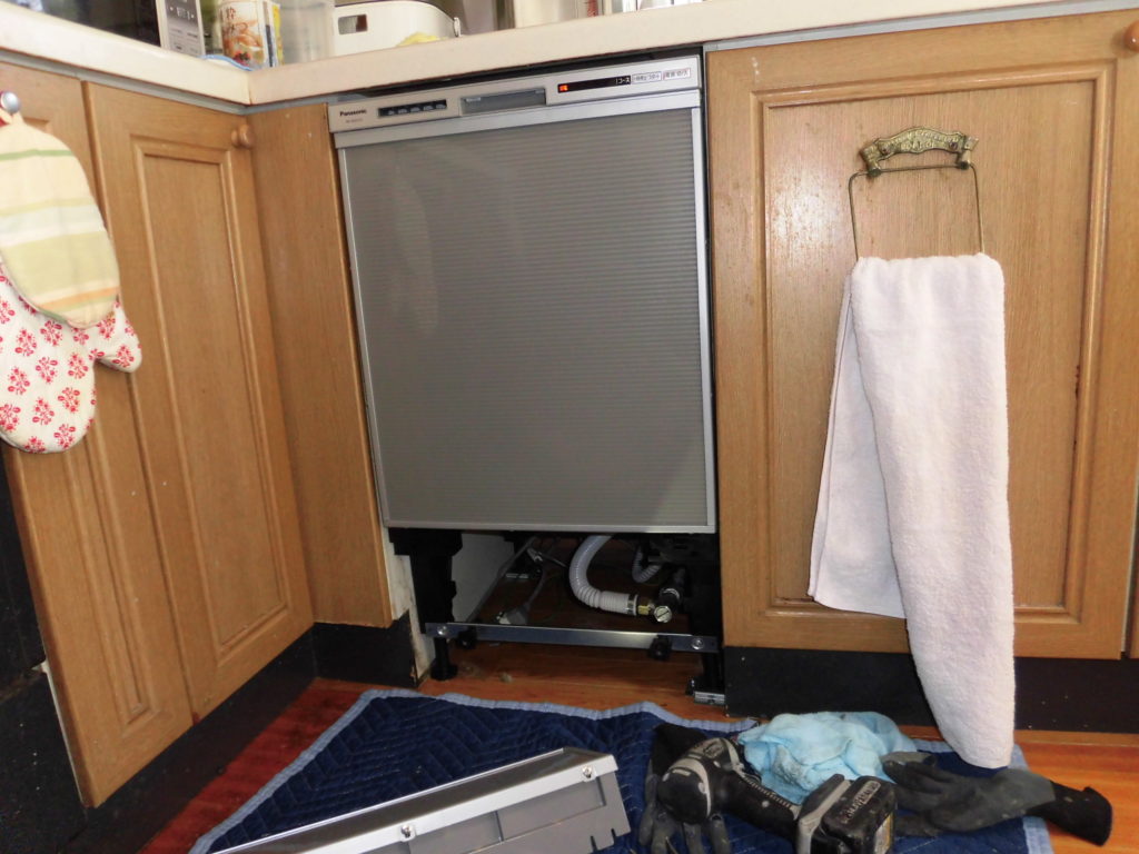 システムキッチンにビルドイン食器洗い機の入れ替え工事