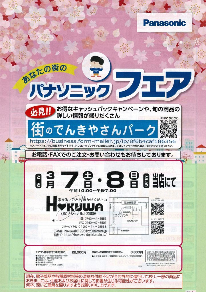 お待たせしました!3月7日(土)3月8日(日)の2日間でパナソニックフェアを当店で開催いたします。